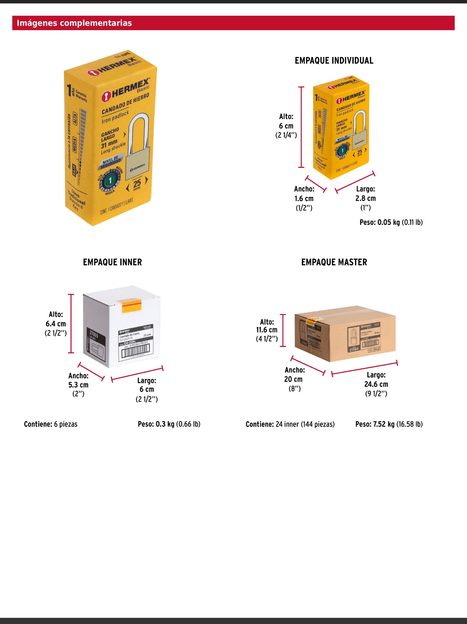 Candado de hierro con acabado latón y gancho largo de acero cromado, ideal para un nivel de seguridad básica. Dispone de un cilindro metálico con 4 pines y seguro tipo perno estándar que ofrecen mayor resistencia a robos. Su mecanismo interno es resistente a la corrosión e incluye 2 llaves tradicionales. Se presenta en empaque individual tipo caja.