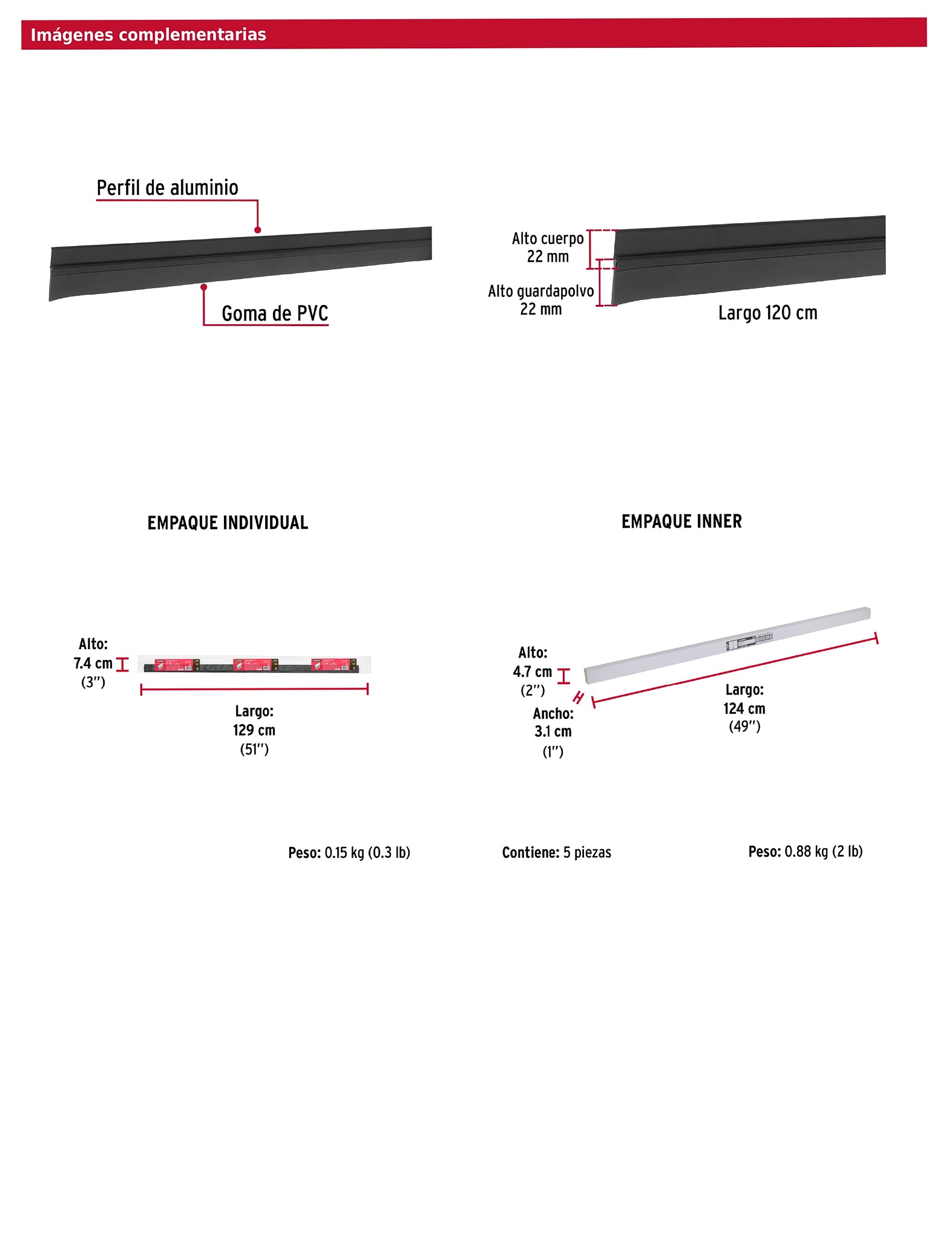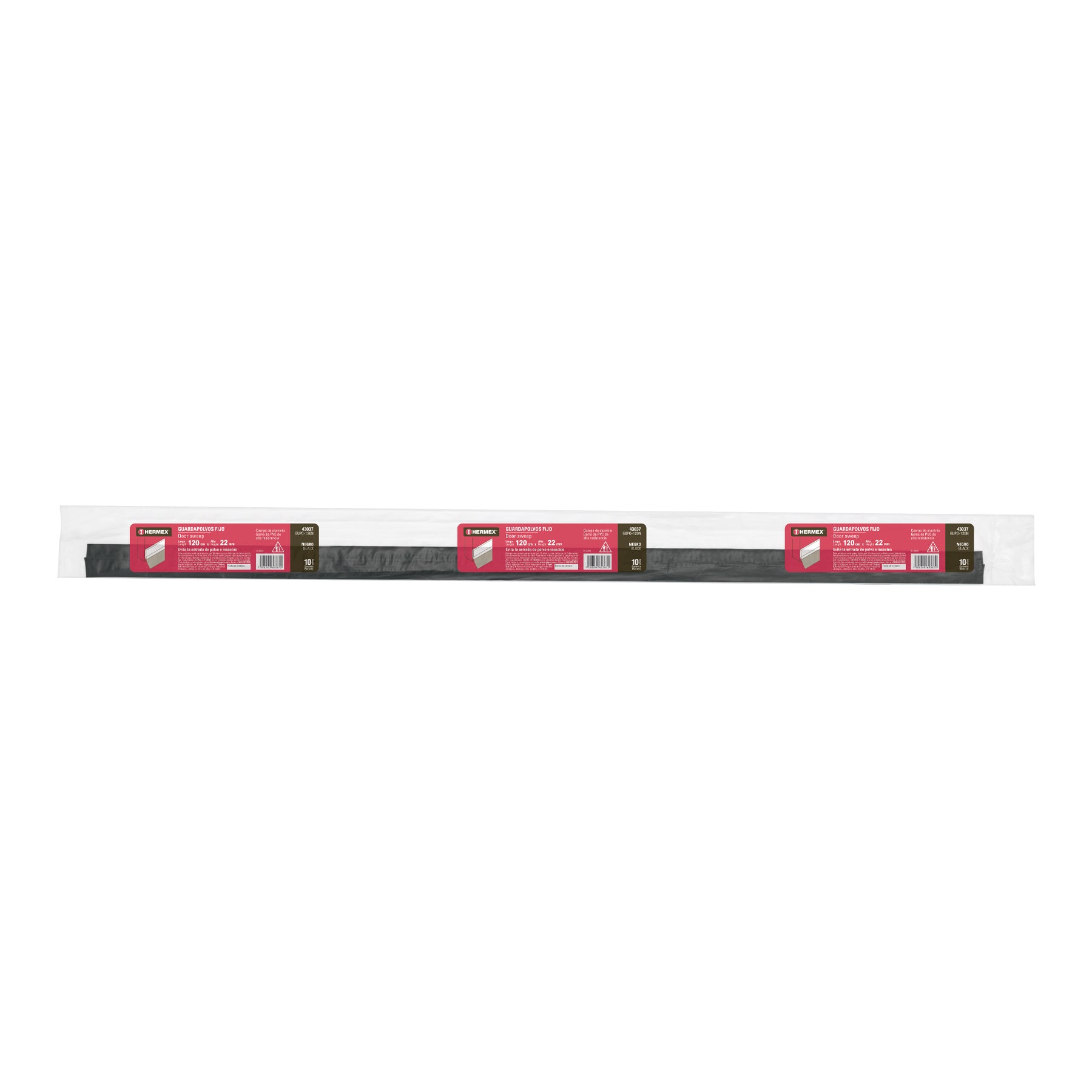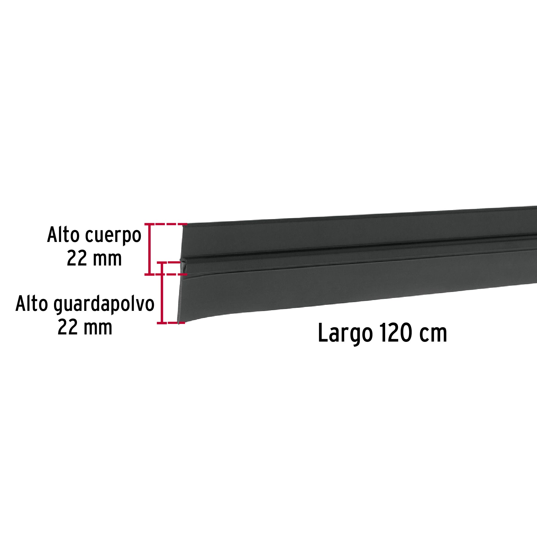 Guardapolvo fijo de 120 cm ideal para puertas y superficies que requieren evitar la entrada de polvo e insectos. Fabricado con perfil de aluminio y goma de PVC de alta resistencia al desgaste, en color negro. Su instalación es sencilla y su estructura proporciona larga durabilidad.