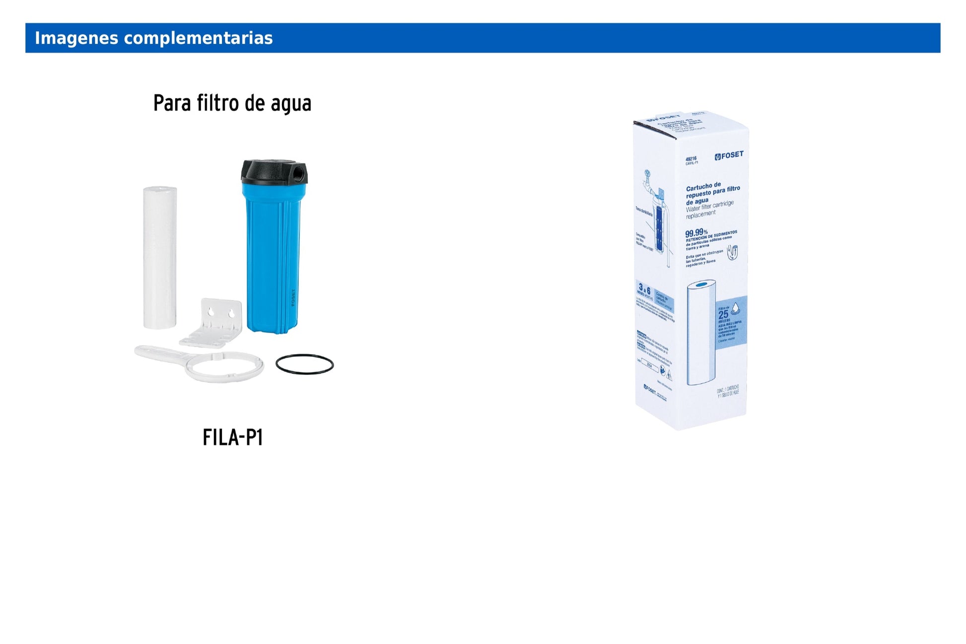 Cartucho de fibra de polipropileno diseñado para retener sedimentos y partículas sólidas como tierra y arena, evitando obstrucciones en regaderas, llaves y tuberías. Compatible exclusivamente con el filtro FILA-P1 de la marca FOSET®, es fácil de instalar y mantener, con una vida útil recomendada de 3 a 6 meses.