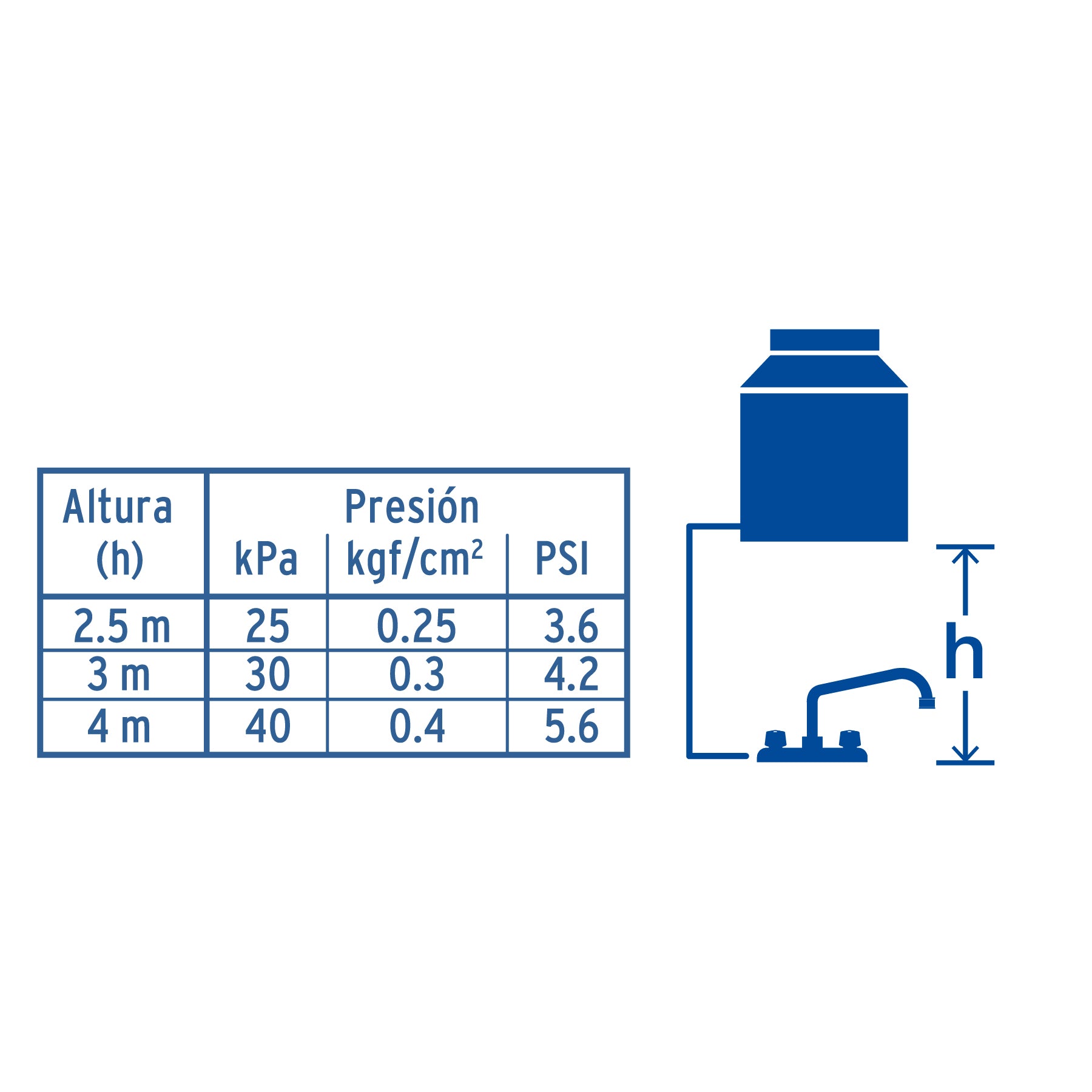 - Presión de trabajo 0.25 kgf/cm² a 1 kgf/cm².