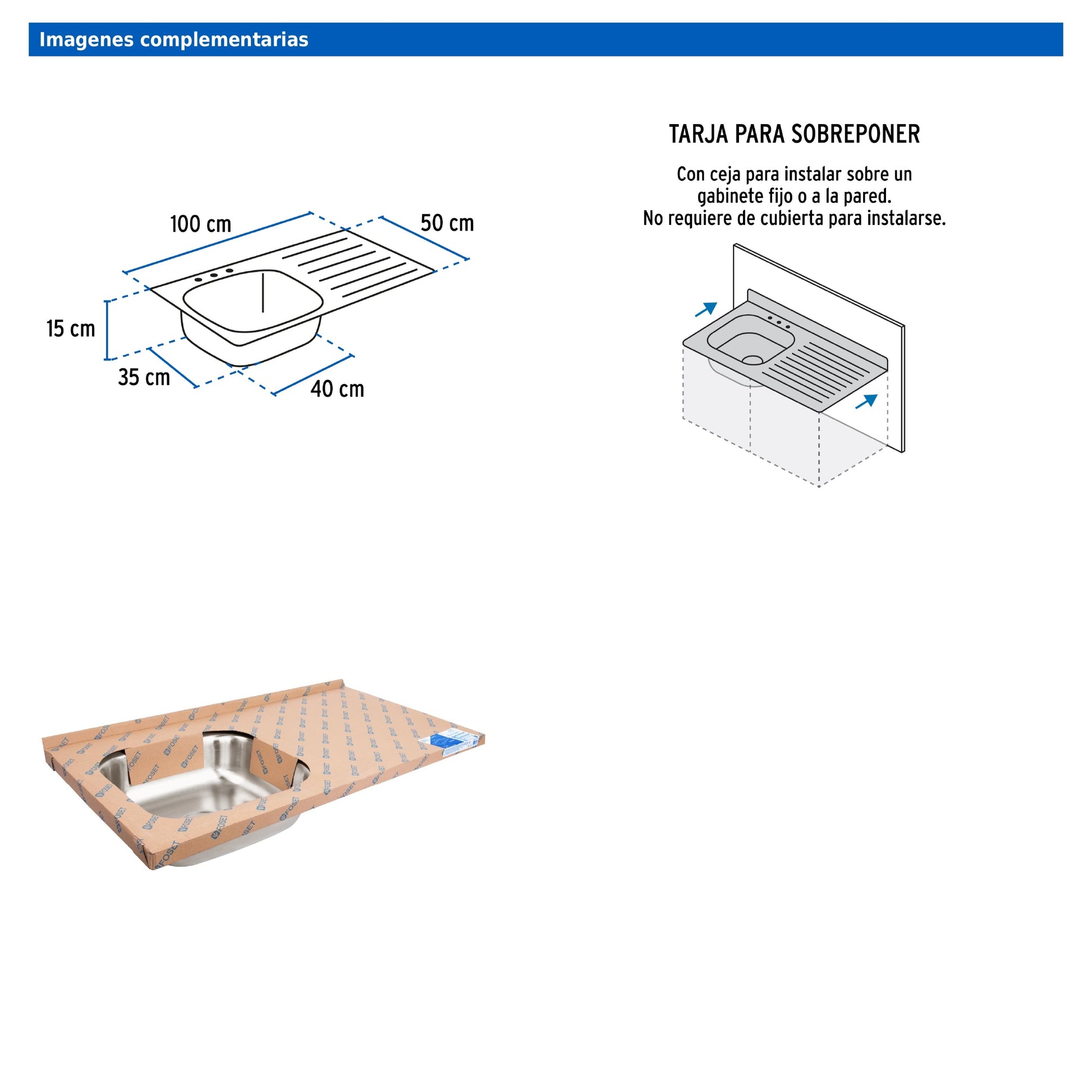 Tarja de sobreponer de 100x50 cm con tina izquierda y acabado satín