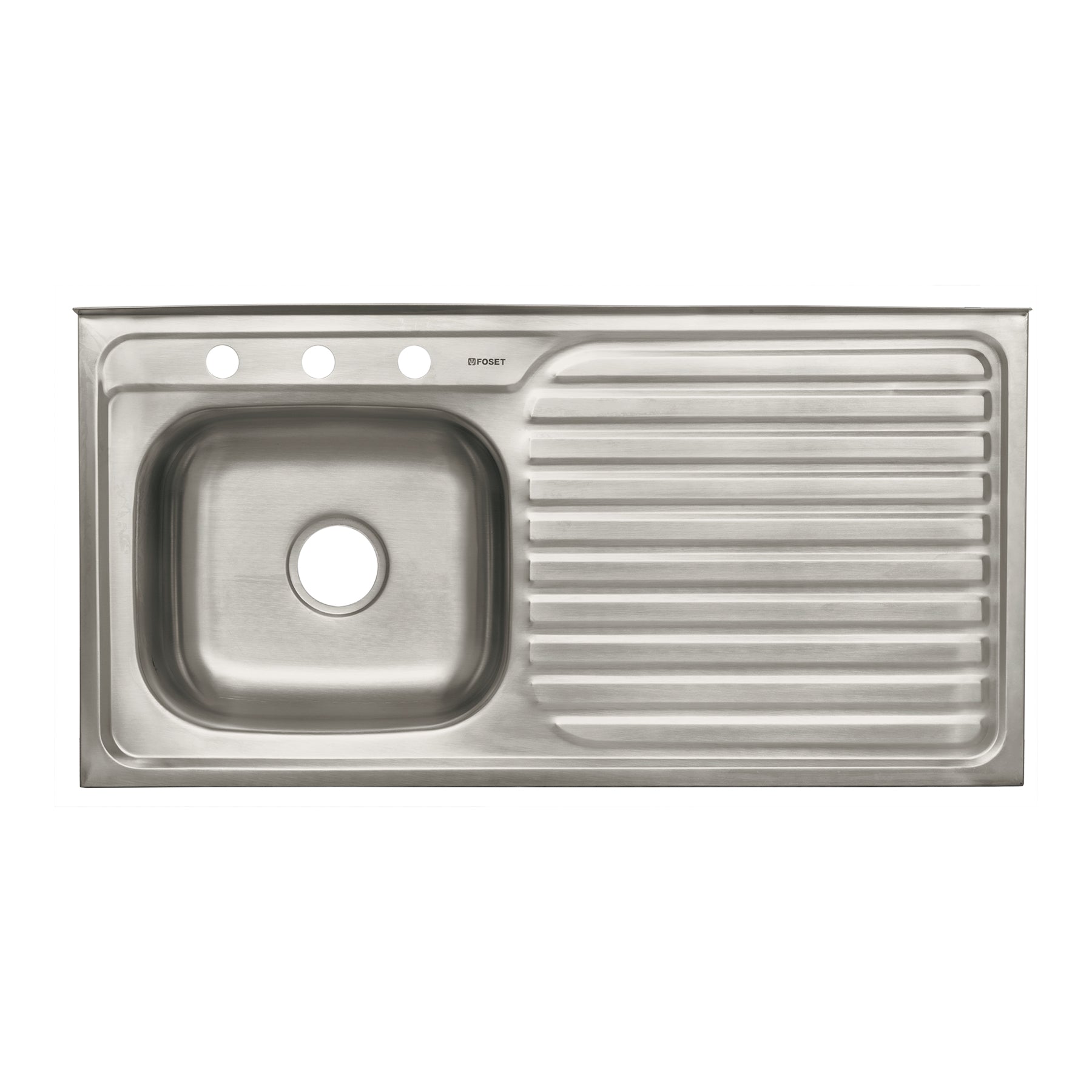 Fabricada en acero inoxidable 201, resistente a la corrosión. Cuenta con acabado satín, capacidad para 10 a 12 platos extendidos, parche aislante que reduce ruido y vibraciones, y es compatible con contracanastas de 3 1/2".