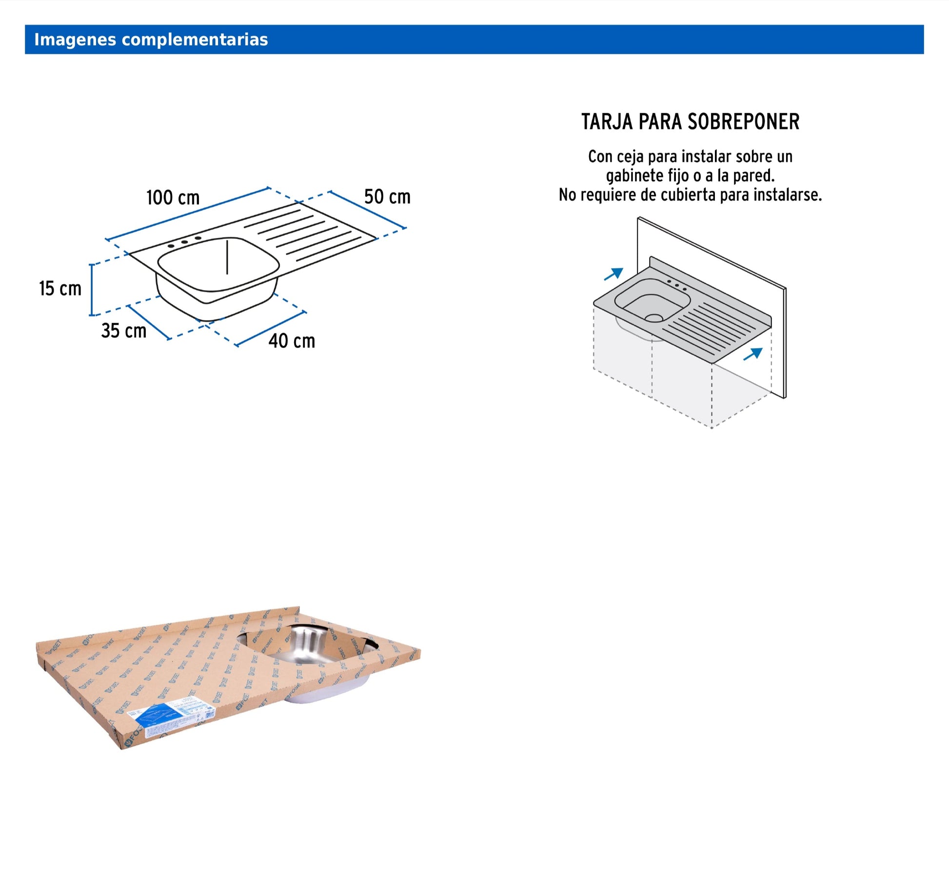 Tarja de sobreponer de 100x50 cm con tina derecha y acabado satín