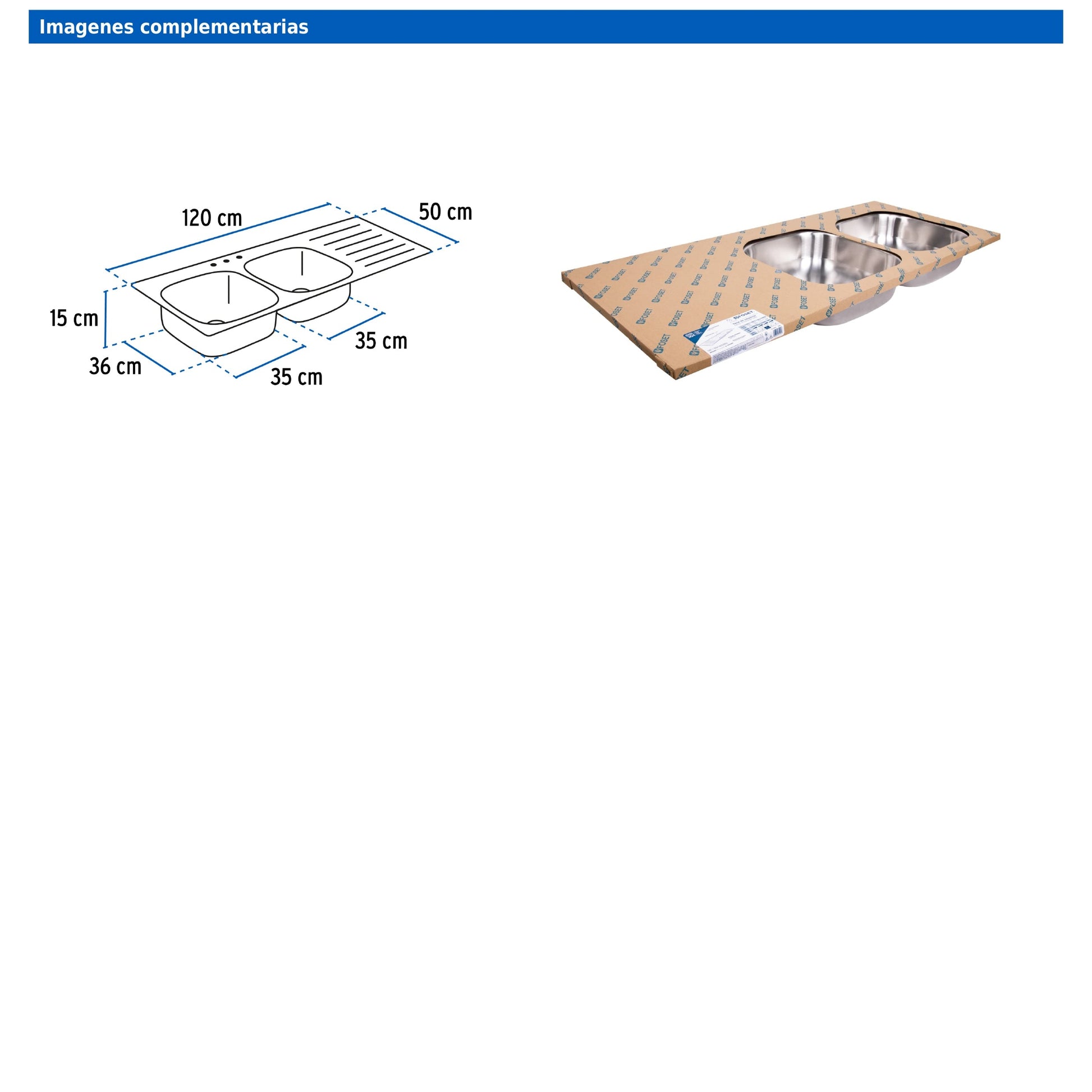 Tarja de empotrar de 120x50 cm con doble tina derecha y acabado satín