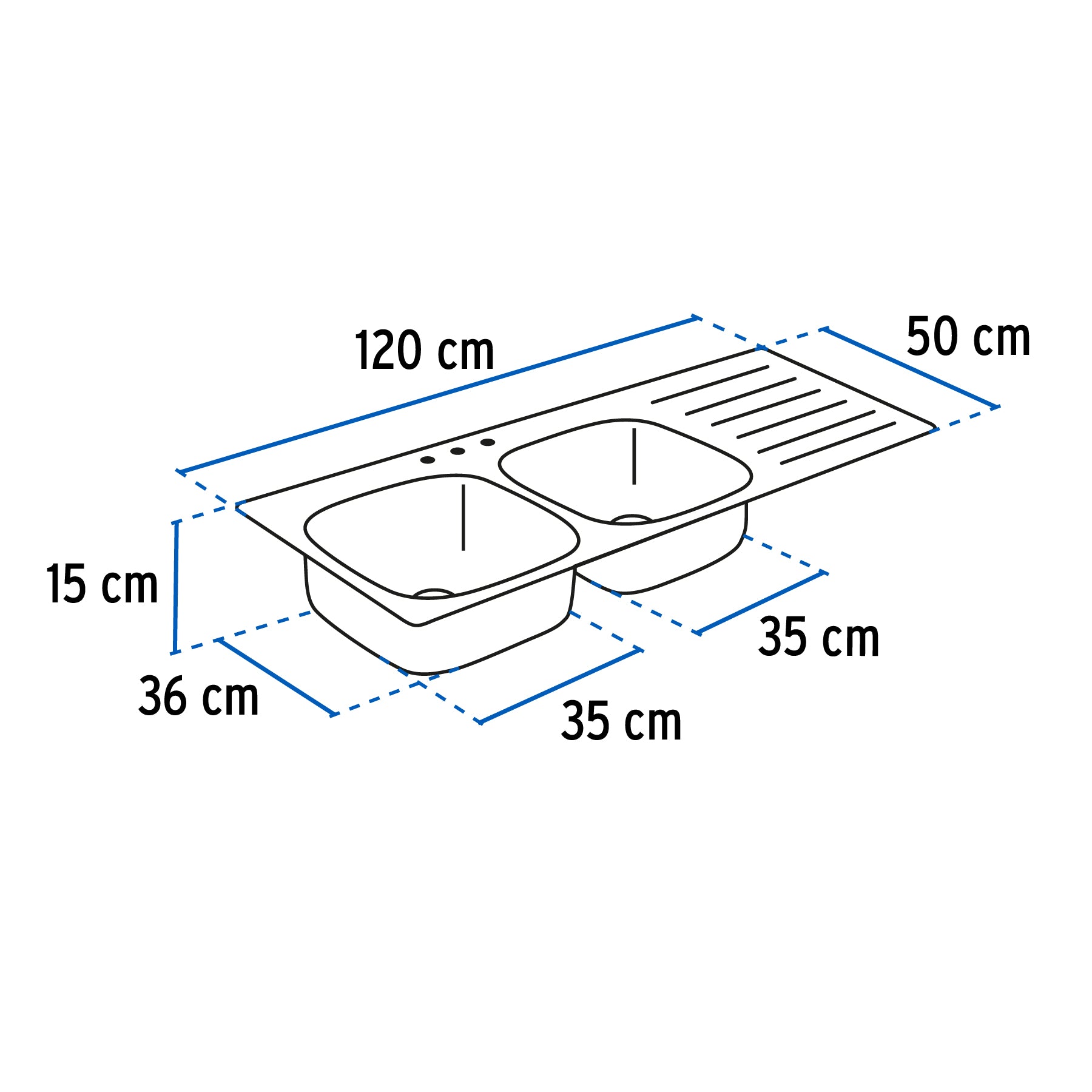 Tarja de empotrar de 120x50 cm con doble tina derecha y acabado satín