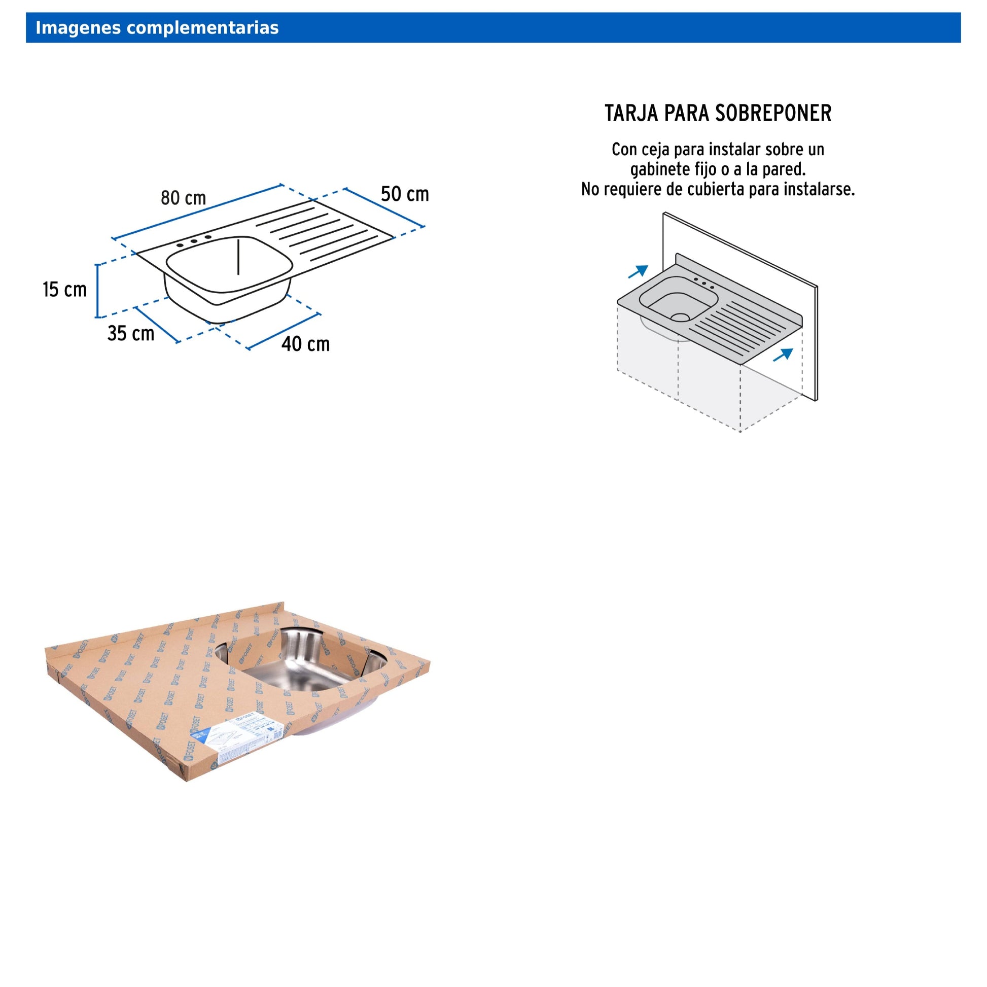 Tarja de sobreponer de 80x50 cm con tina derecha y acabado satín