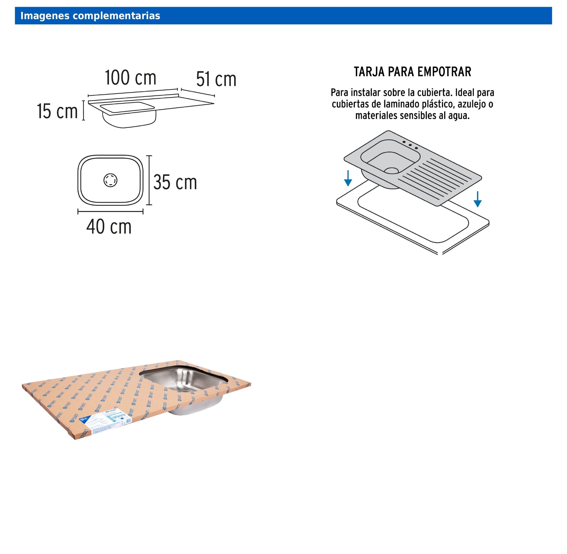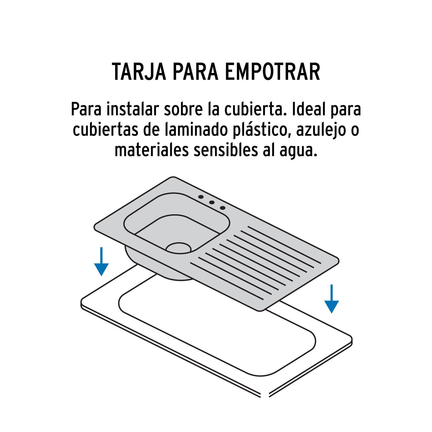 Tarja de empotrar de 100x50 cm con tina derecha y acabado satín