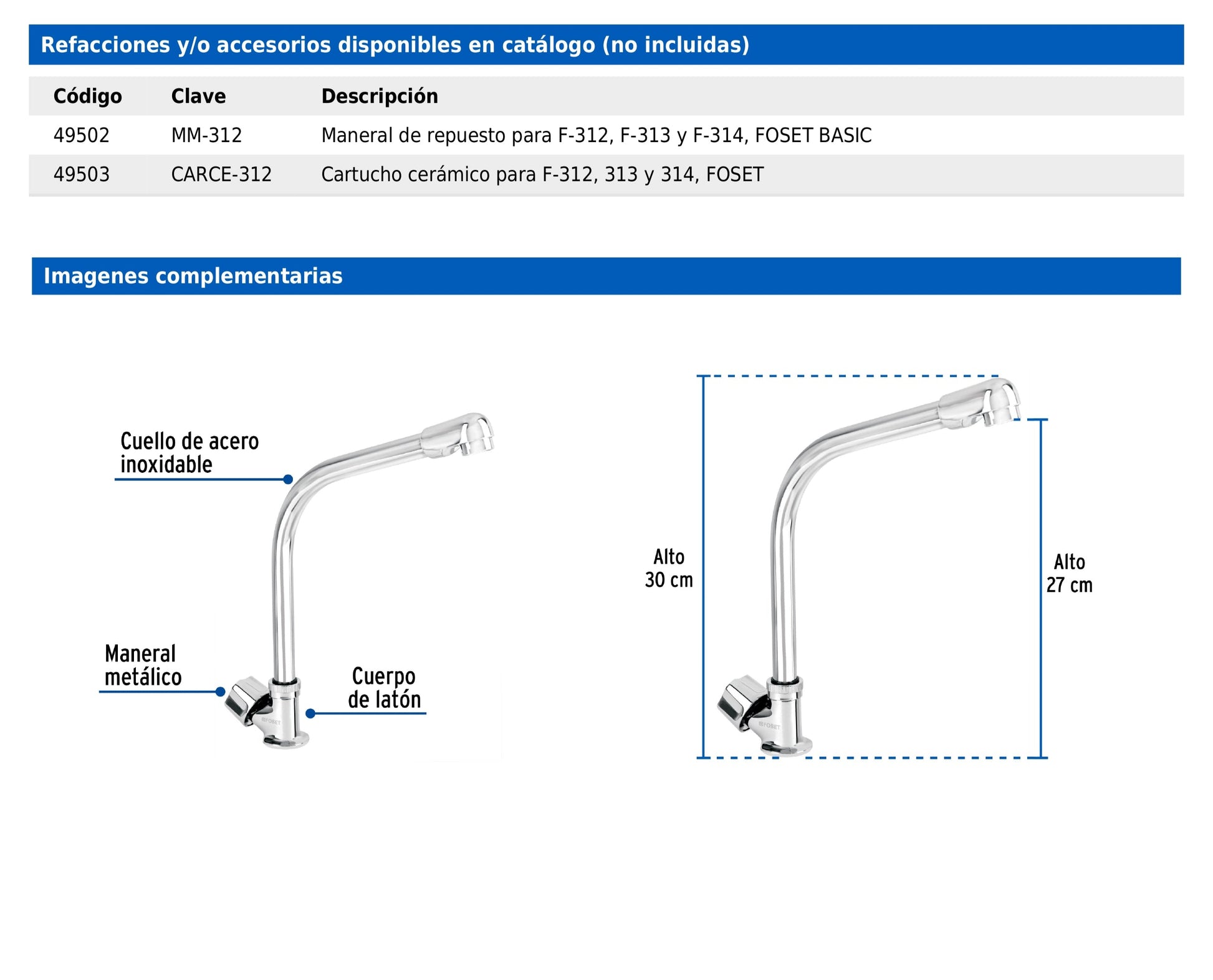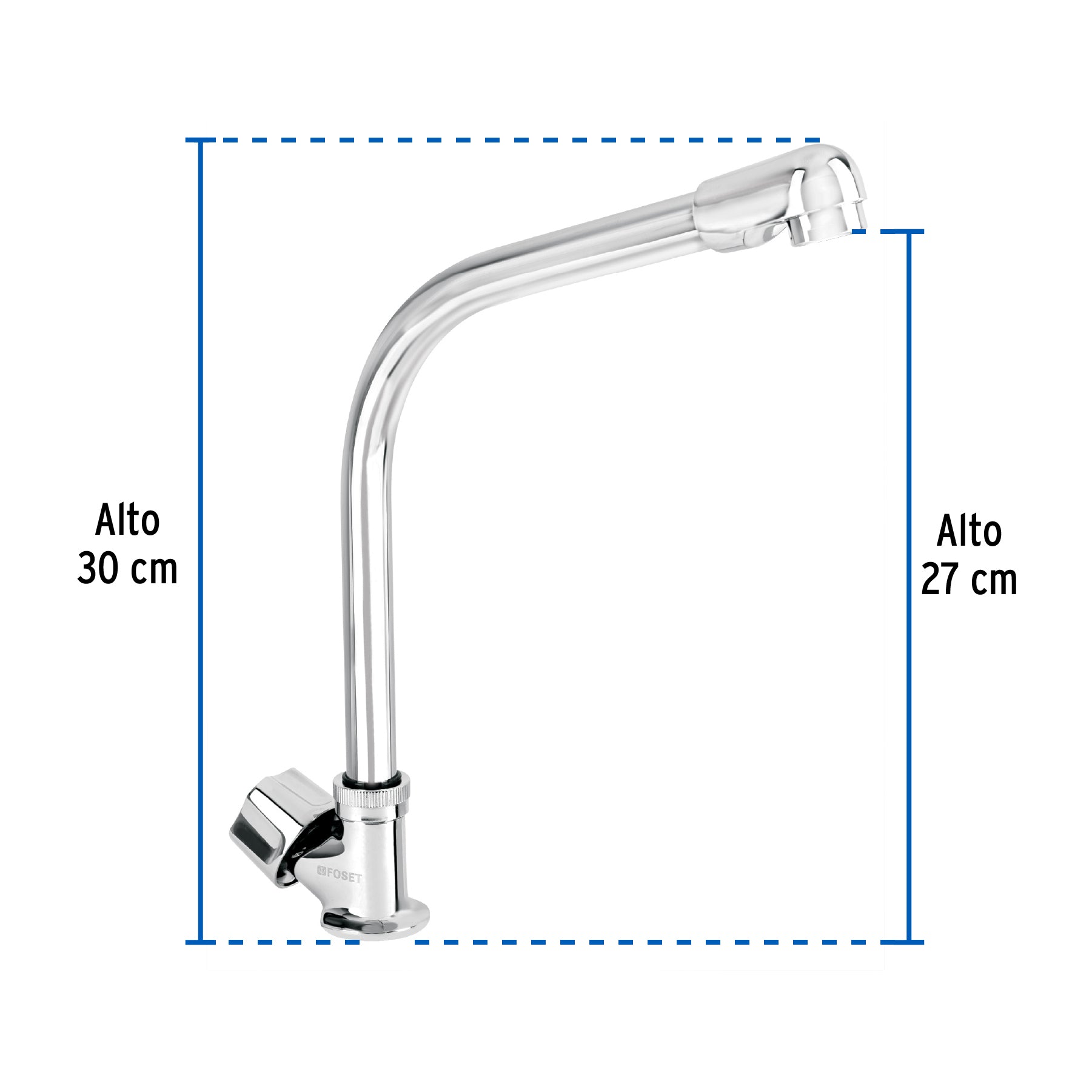 Llave Foset Basic para fregadero con cuerpo de latón cromado que ofrece máxima durabilidad. Incorpora maneral metálico hexagonal y cuello tipo cobra de acero inoxidable. Integra cartucho cerámico de 1/4 de vuelta para una apertura suave y precisa, e incluye aireador que mejora el flujo del agua.