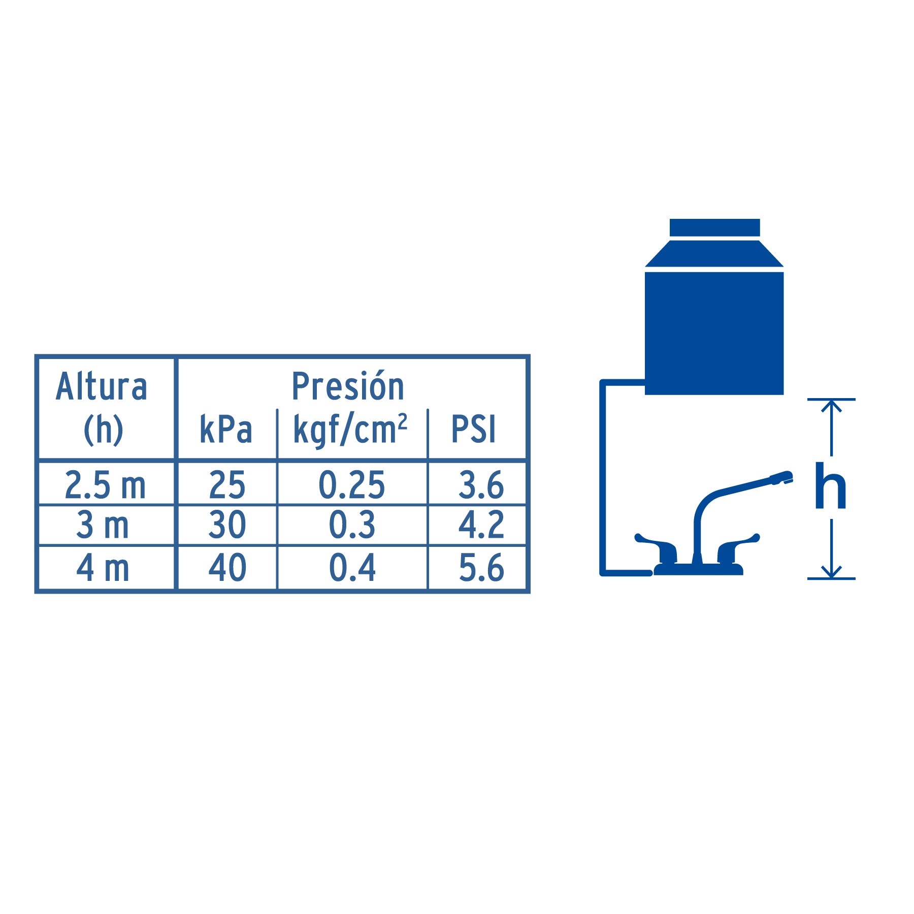- Presión de trabajo 0.25 kgf/cm² a 1 kgf/cm².