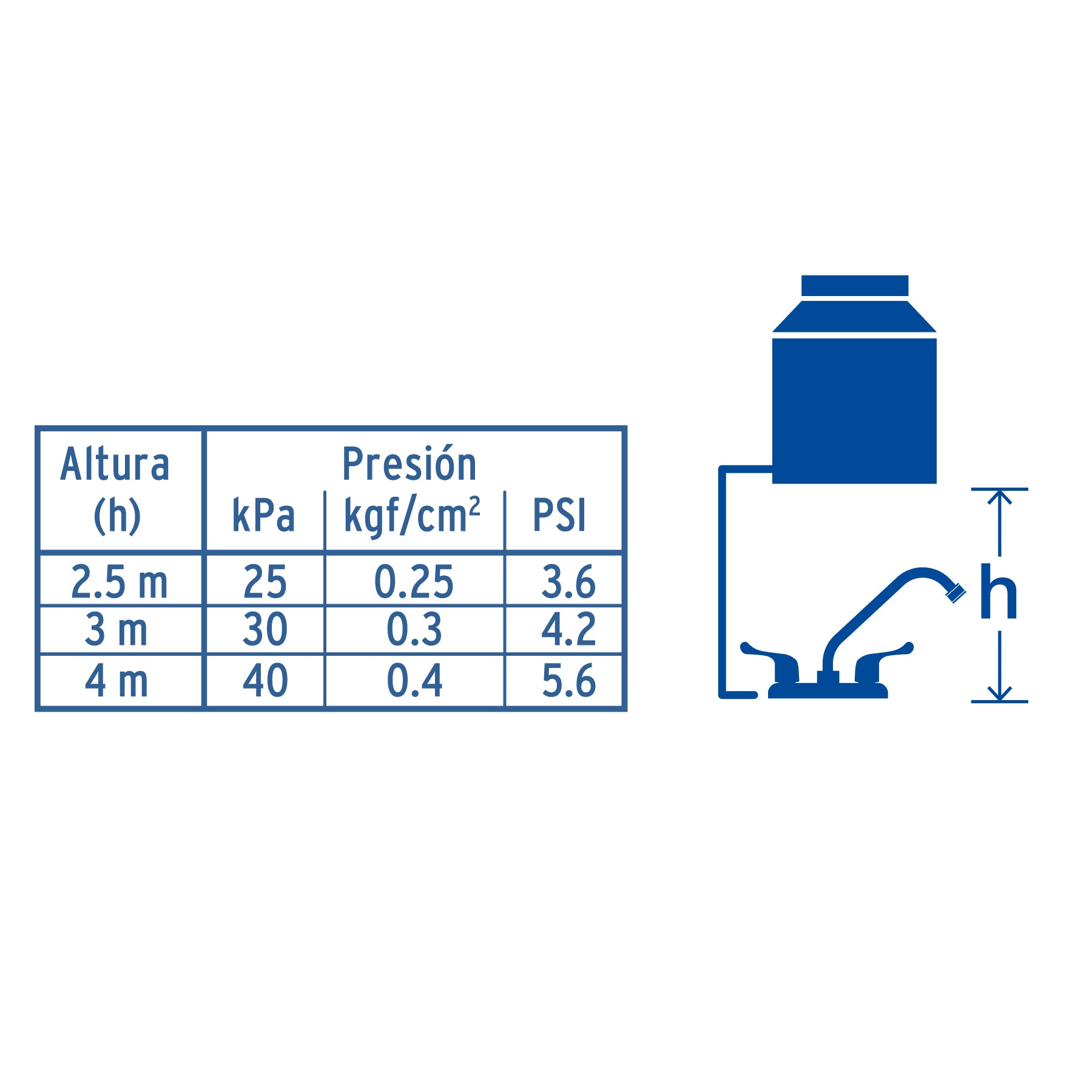 - Presión de trabajo 0.25 kgf/cm² a 1 kgf/cm².