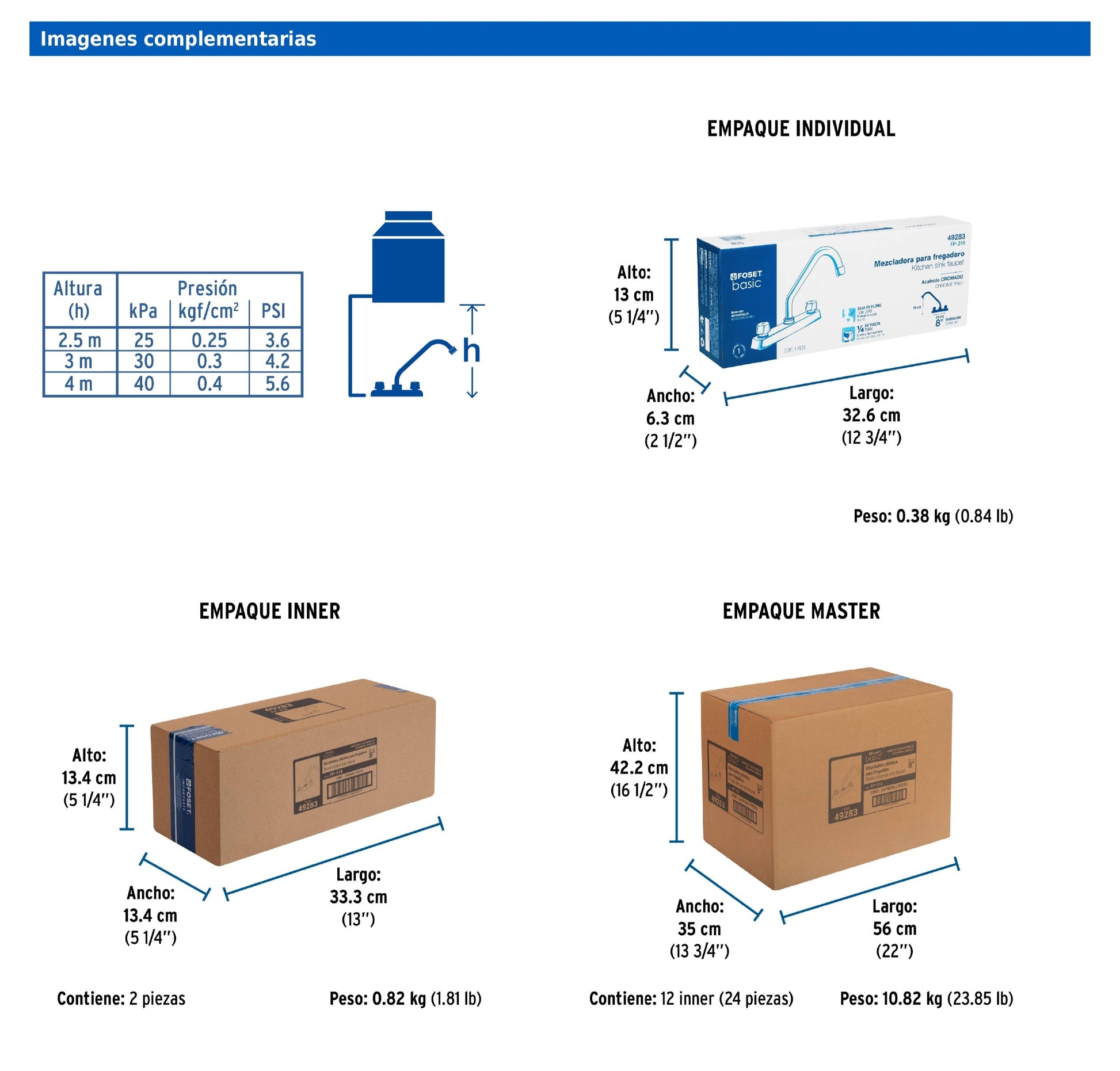 - Presión de trabajo 0.25 kgf/cm² a 1 kgf/cm².