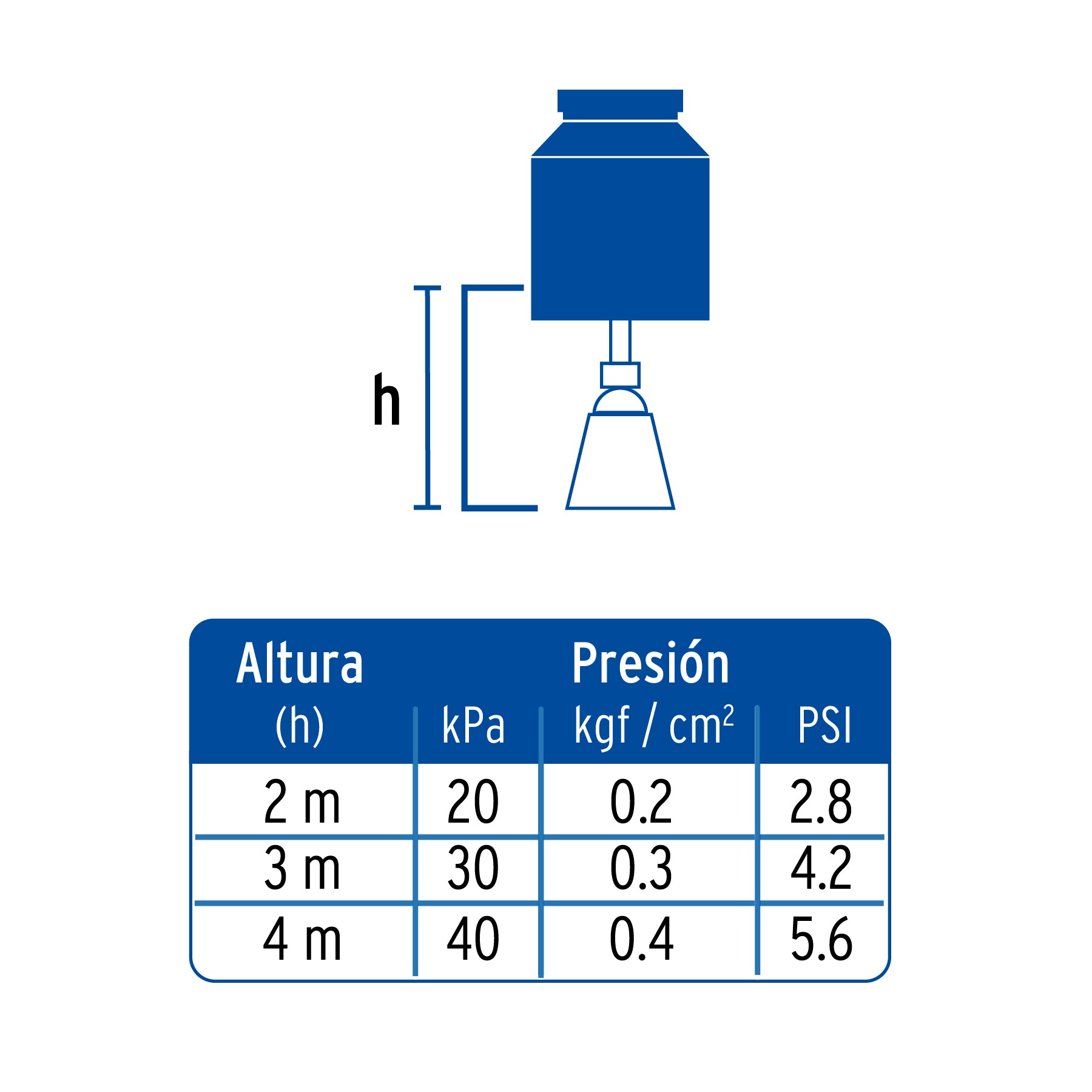 - Presión de trabajo 0.25 kgf/cm² a 6 kgf/cm².