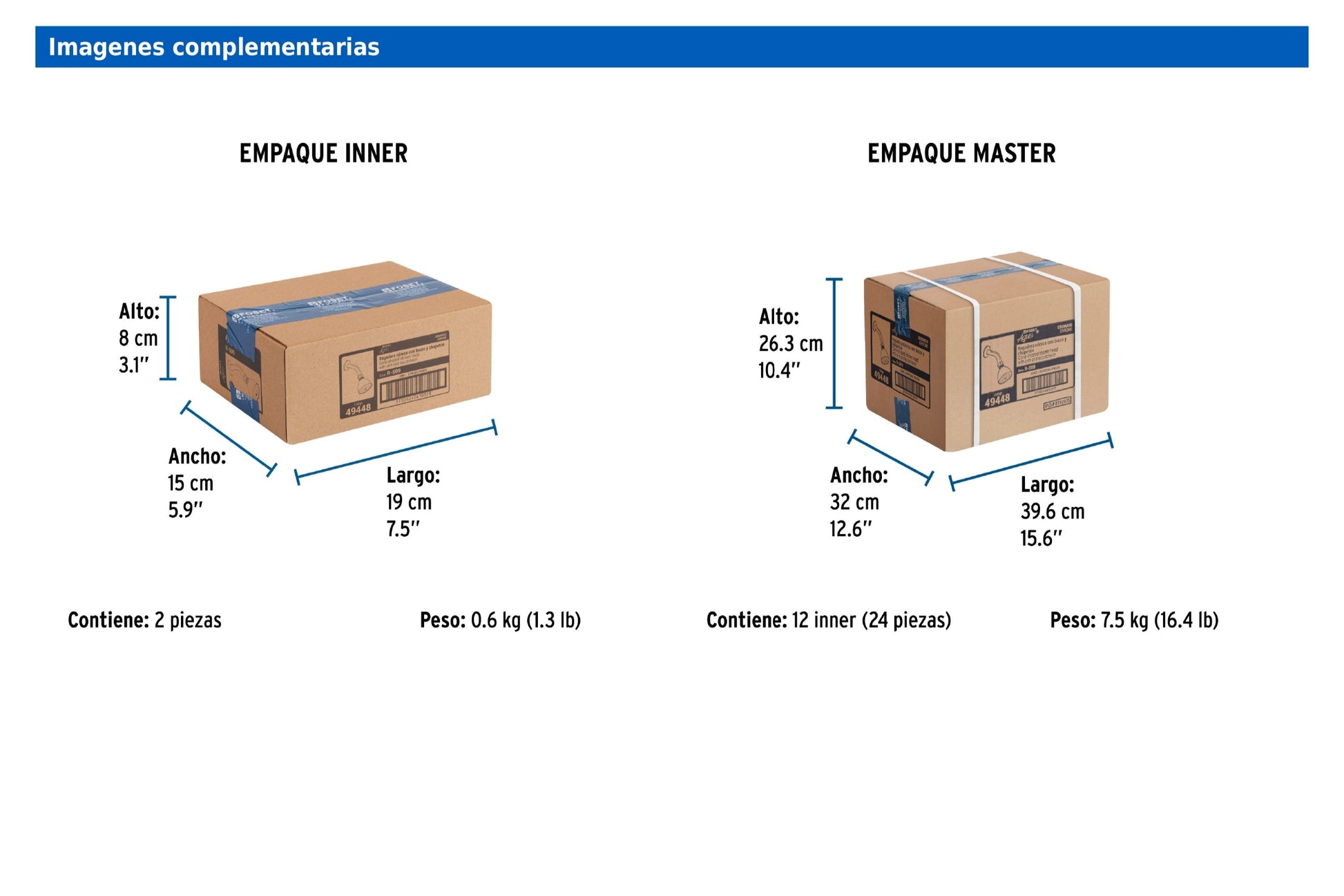 - Diámetro de la cabeza 2 1/2" (6.5 cm).