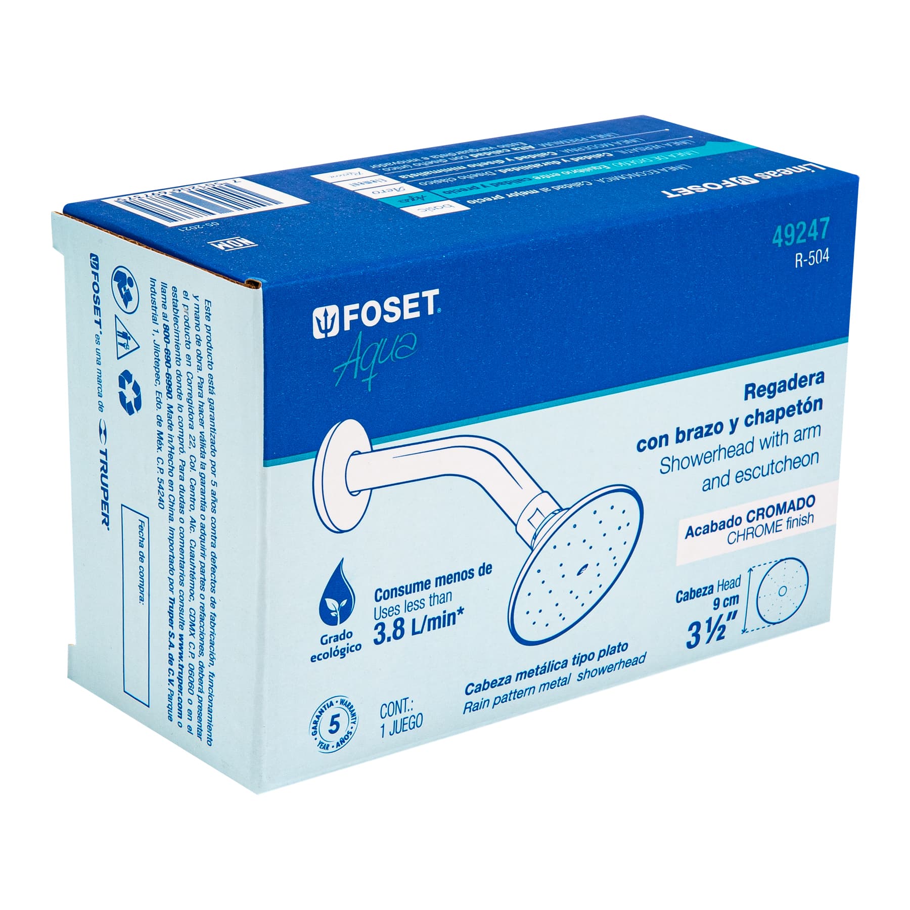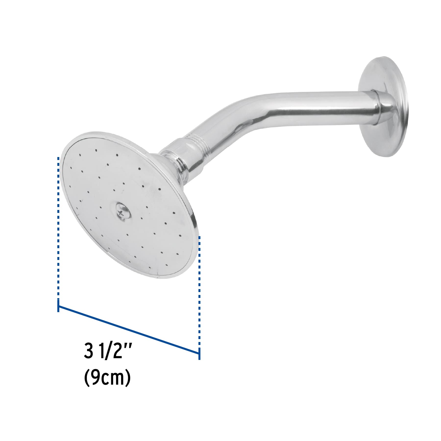 Regadera redonda metálica de 3-1/2" con brazo y chapetón cromados