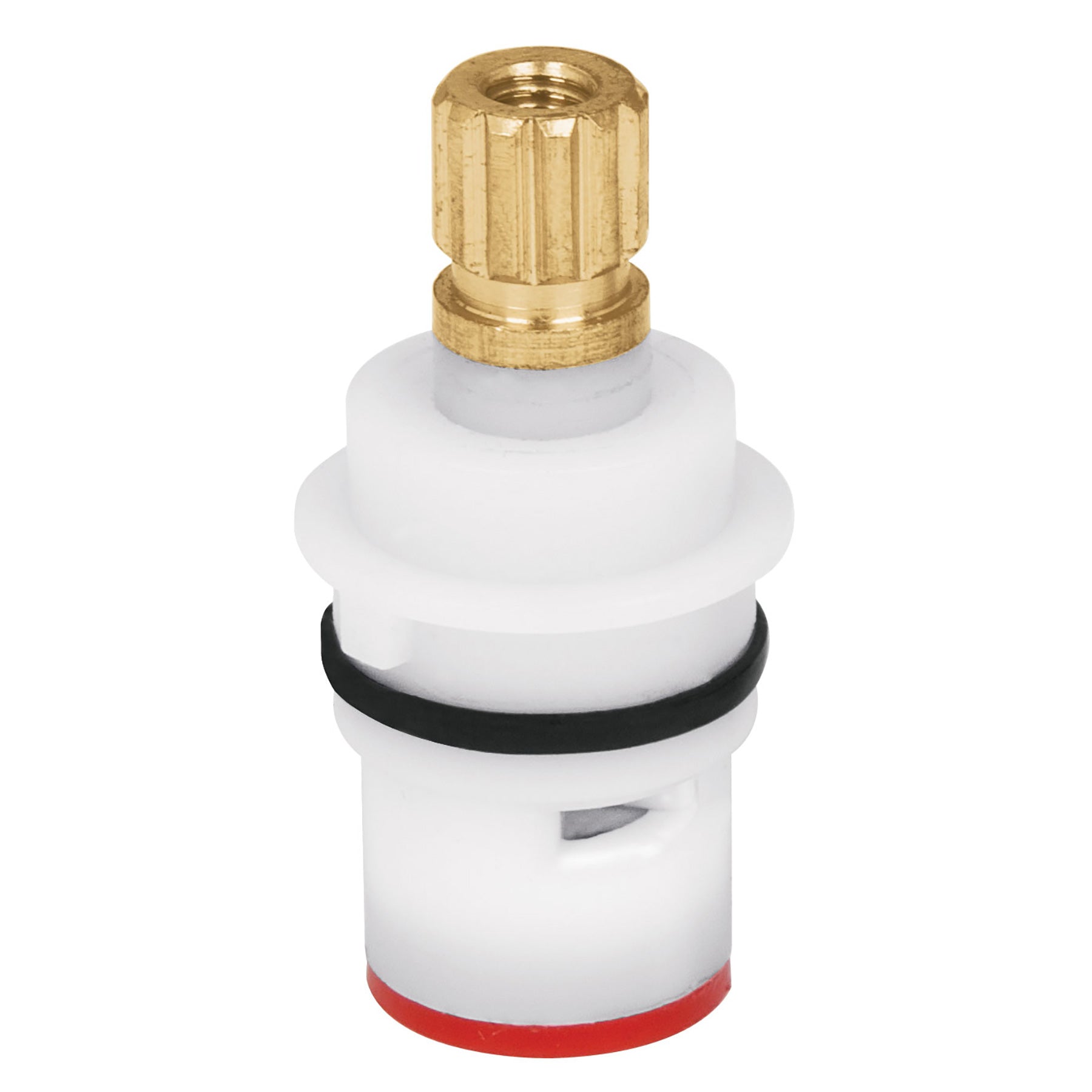 Cartucho de cuarto de vuelta fabricado en POM con discos cerámicos, diseñado para llaves MP-142. Su ensamble de estriado estándar permite una instalación rápida y segura. Compatible con agua fría o caliente, es un repuesto ideal para mantener la funcionalidad y estanqueidad de grifería doméstica.