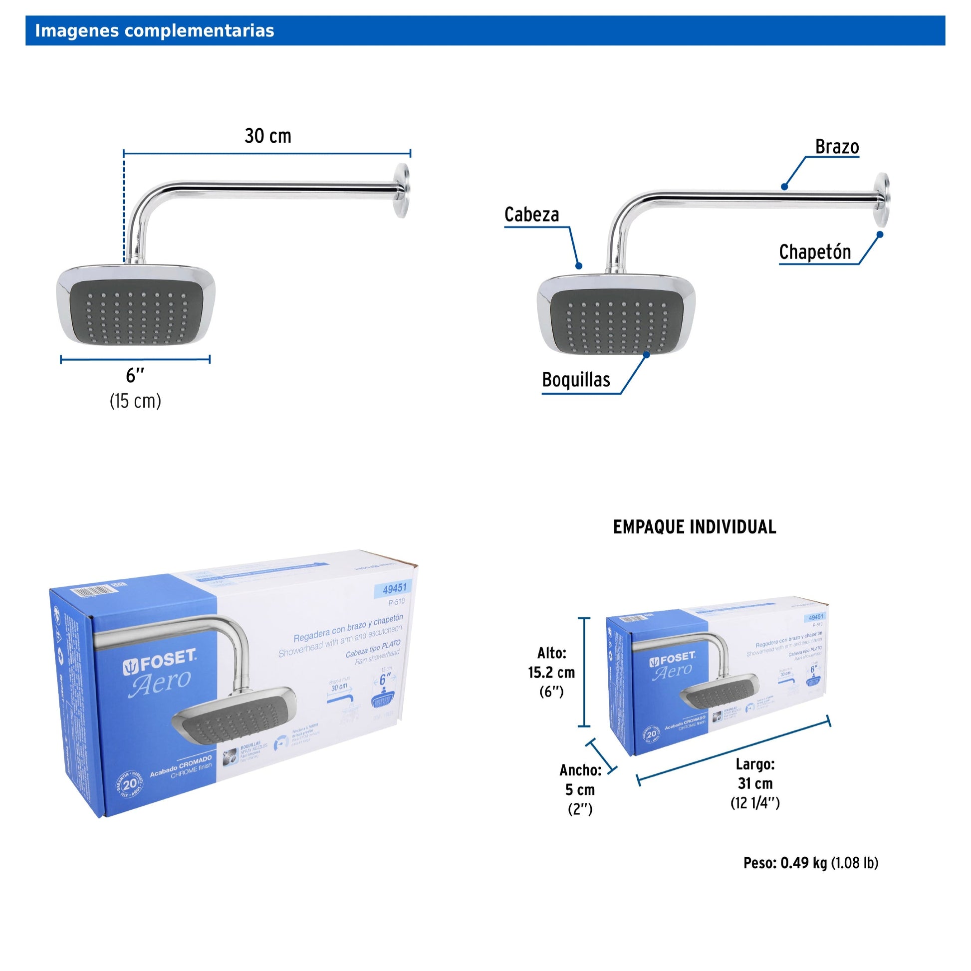 - Diámetro de la cabeza 6" (15 cm).