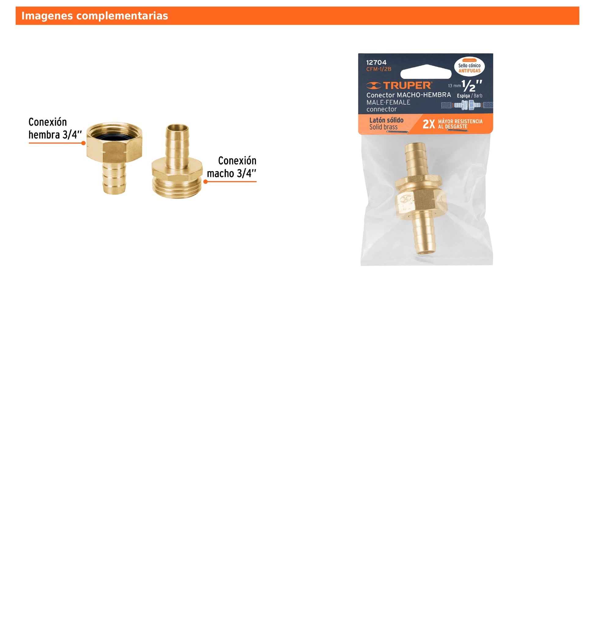 Conectores macho y hembra de latón sólido para manguera de 1/2"