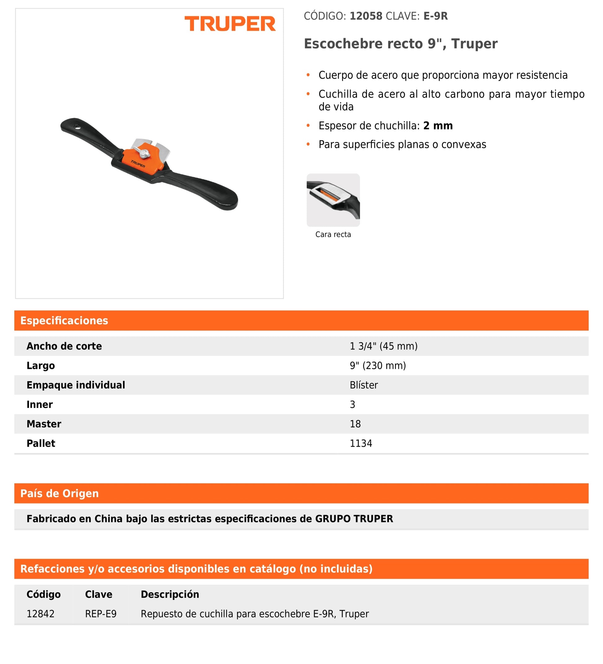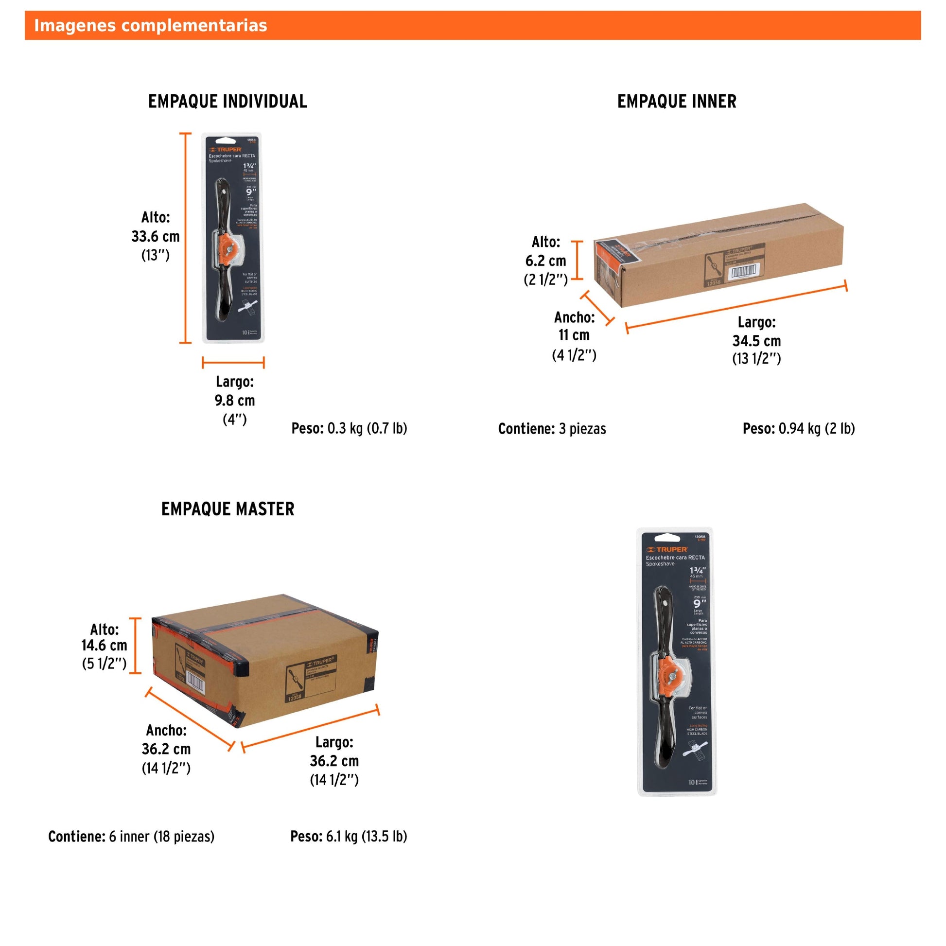 Este escochebre recto Truper cuenta con cuerpo de acero para mayor resistencia y cuchilla de acero al alto carbono que prolonga su vida útil.