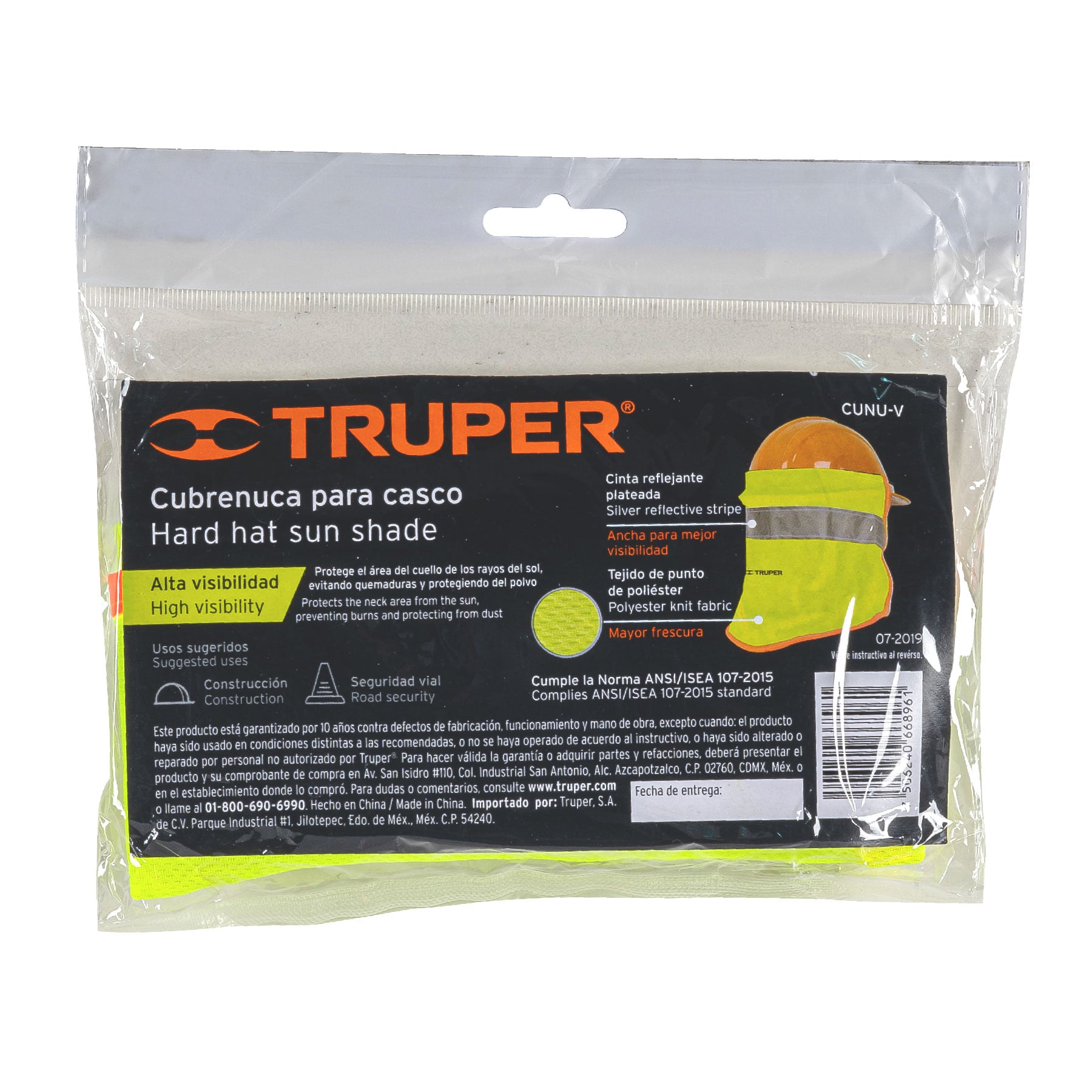 Este cubrenuca Truper está diseñado para proteger el cuello y orejas del sol y el polvo, mejorando la seguridad y comodidad en ambientes de trabajo al aire libre. Su cinta reflejante de alta visibilidad de 2" permite ser visto hasta a 40 metros de distancia.
