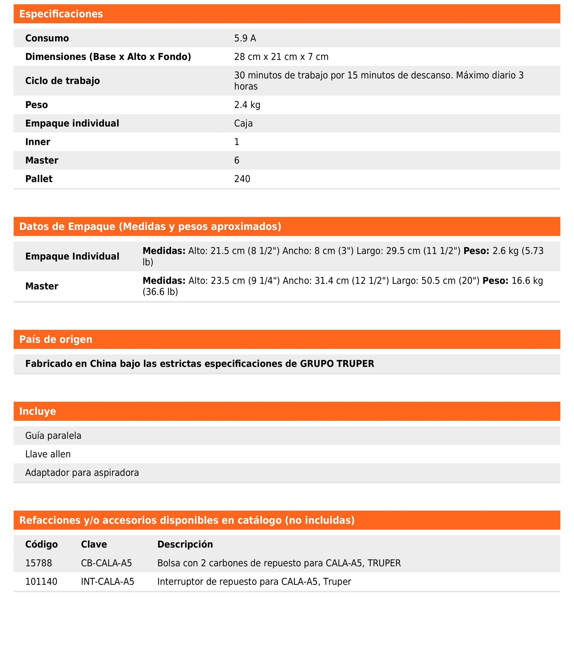 - Capacidad de corte máx. metal: 9.5 mm (3/8").