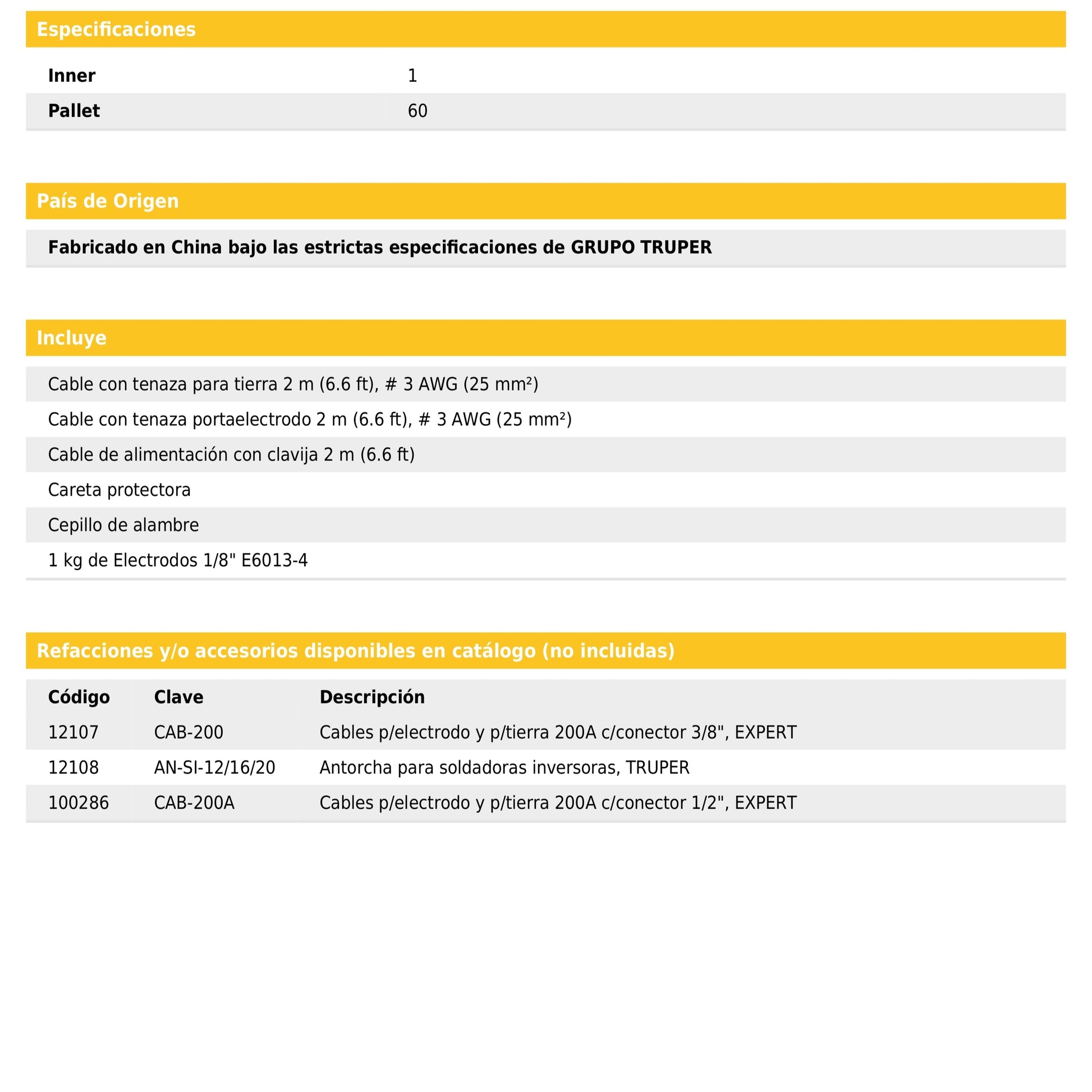 Compatible con procesos SMAW y TIG con electrodos hasta 5/32".